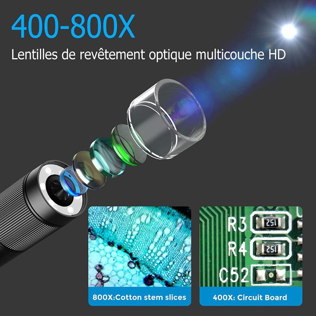 Ce microscope numérique portable est parfait pour ceux qui souhaitent explorer le monde microscopique de manière pratique et directe. Il est équipé d’une carte mémoire de 32 Go qui permet de stocker jusqu’à 180 000 photos, facilitant ainsi l’enregistrement et l’analyse des images sur un ordinateur ou d’autres appareils. De plus, il dispose d’une lumière LED à deux niveaux pour ajuster la luminosité en fonction des besoins.